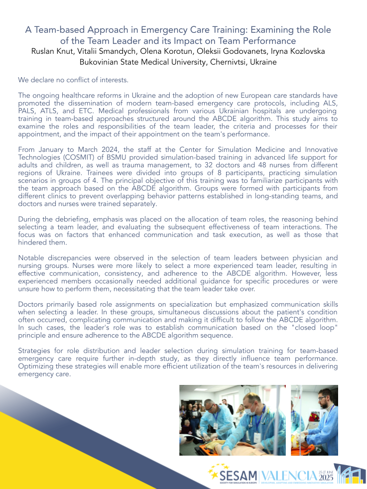 TEAM INTERACTION AS A WAY OF LEARNING FOR MEDICAL AND UNDERGRADUATE NURSING STUDENTS IN THE CENTER FOR MEDICAL SIMULATION OF IVANO-FRANKIVSK NATIONAL MEDICAL UNIVERSITY