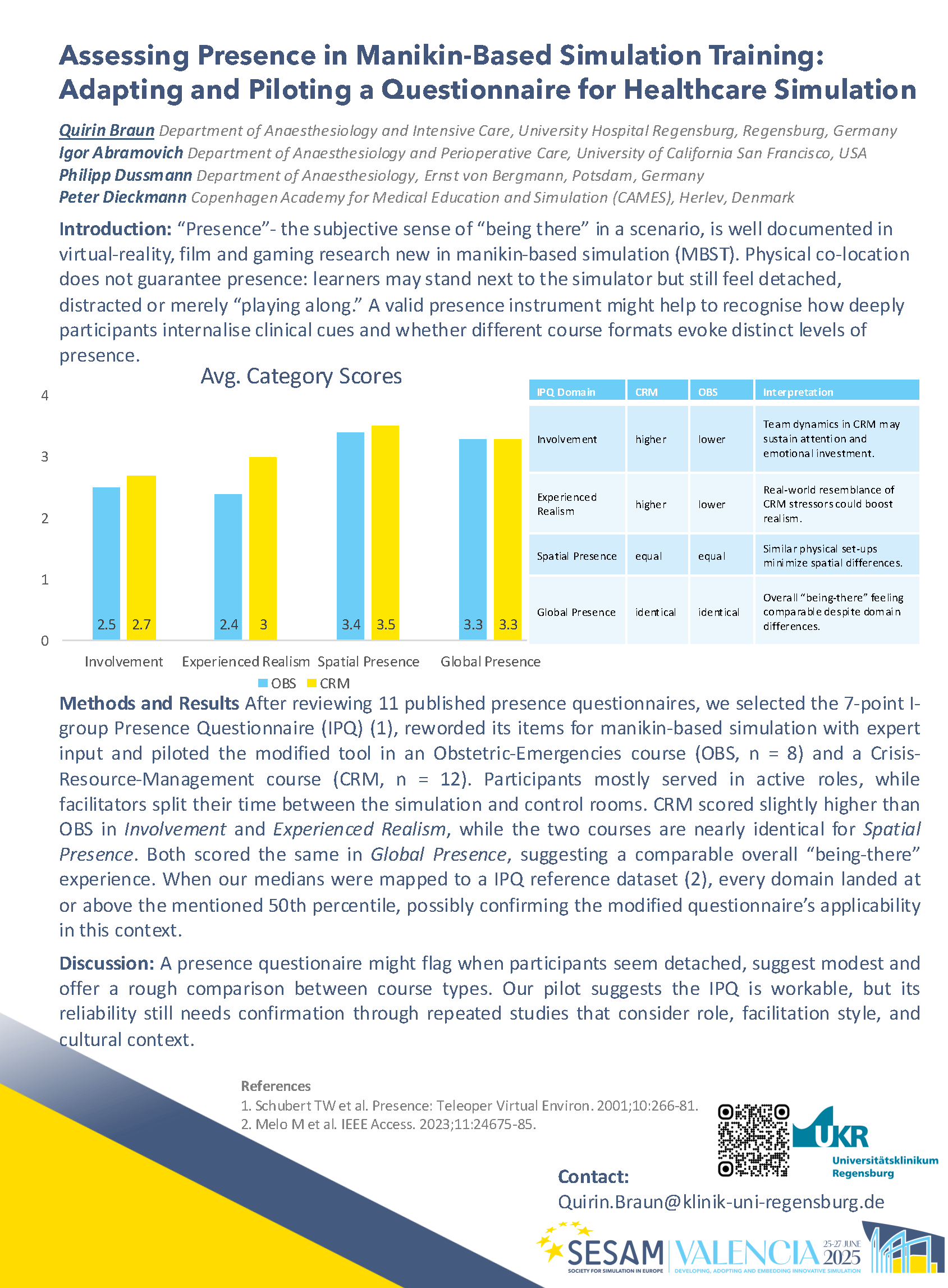 Assessing Presence in Manikin-Based Simulation Training Adapting and Piloting a Questionnaire for Healthcare Simulation