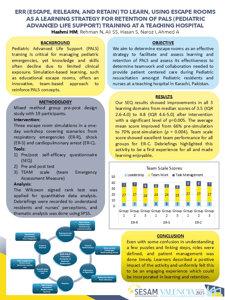 ERR (Escape, Relearn, and Retain) to learn, using escape rooms as a learning strategy for retention of PALS (Pediatric Advanced life support) training at a teaching hospital!
