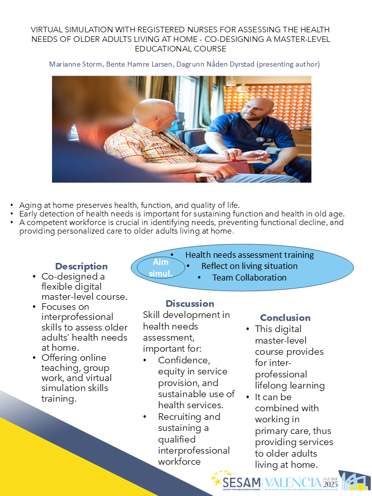 VIRTUAL SIMULATION WITH REGISTERED NURSES FOR ASSESSING THE HEALTH NEEDS OF OLDER ADULTS LIVING AT HOME – CO-DESIGNING A MASTER-LEVEL EDUCATIONAL COURSE